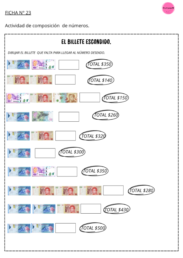 El recurso está diseñado para que los niños no solo practiquen operaciones, sino que también desarrollen habilidades de razonamiento numérico, fortaleciendo la fluidez en el manejo de las unidades, decenas y centenas a través de un recurso cercano y cotidiano como el dinero.