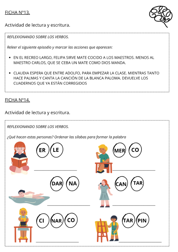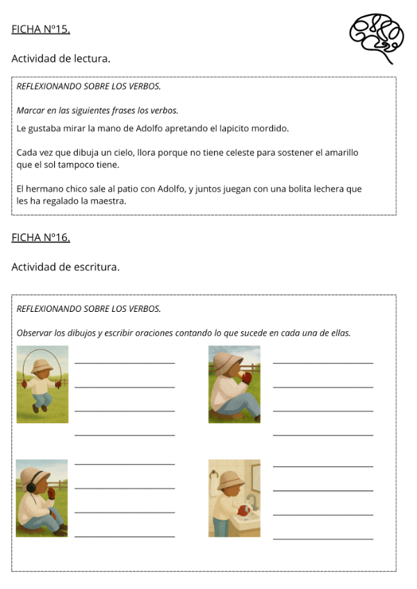 📝 Situaciones de escritura: producción de palabras, oraciones y pequeños textos vinculados con la historia.